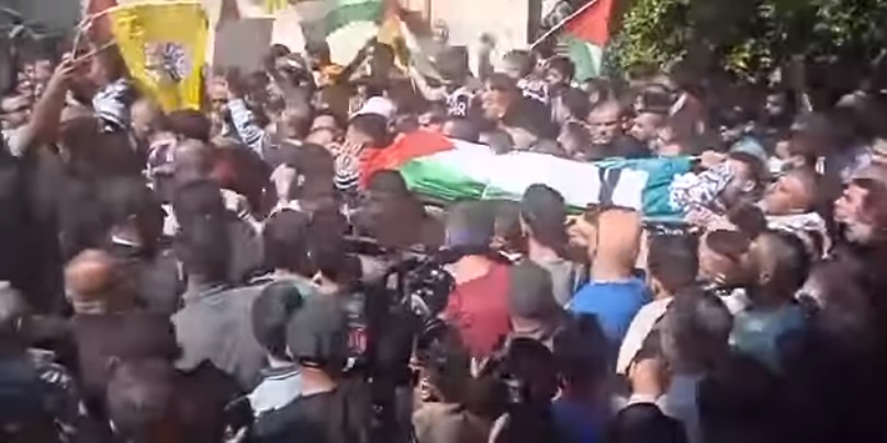 وصدح المشيعون بالتكبيرات والهتافات المؤيدة لمقاومة الاحتلال، ورددوا هتافات منها: “الموت ولا المذلة”، و”الشهيد مش حيا الله”.